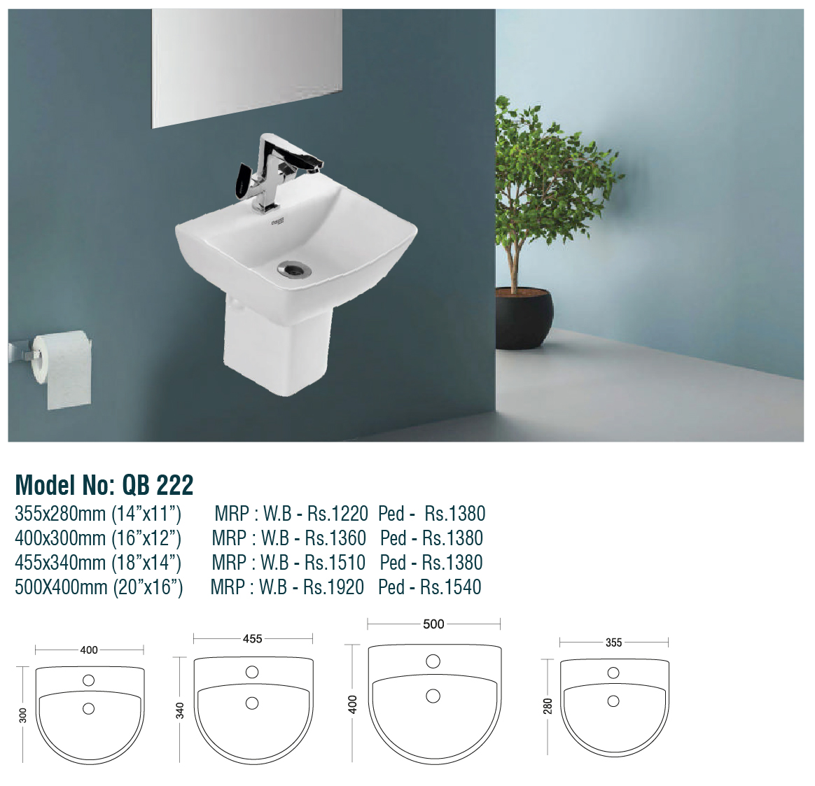 Wall Hung Basin With Pedestal