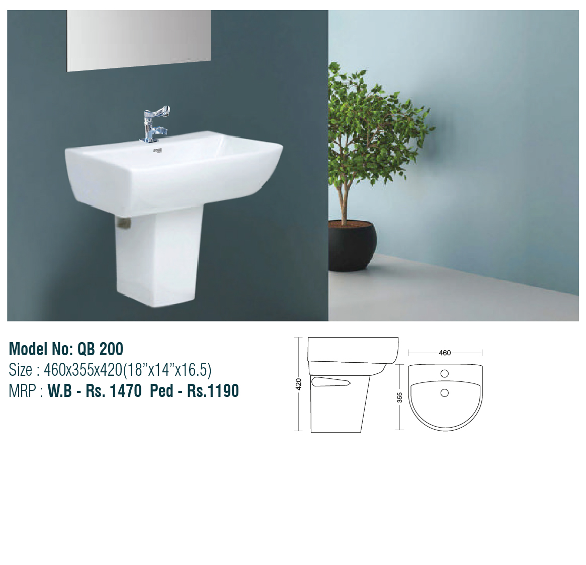 Wall Hung Basin With Pedestal
